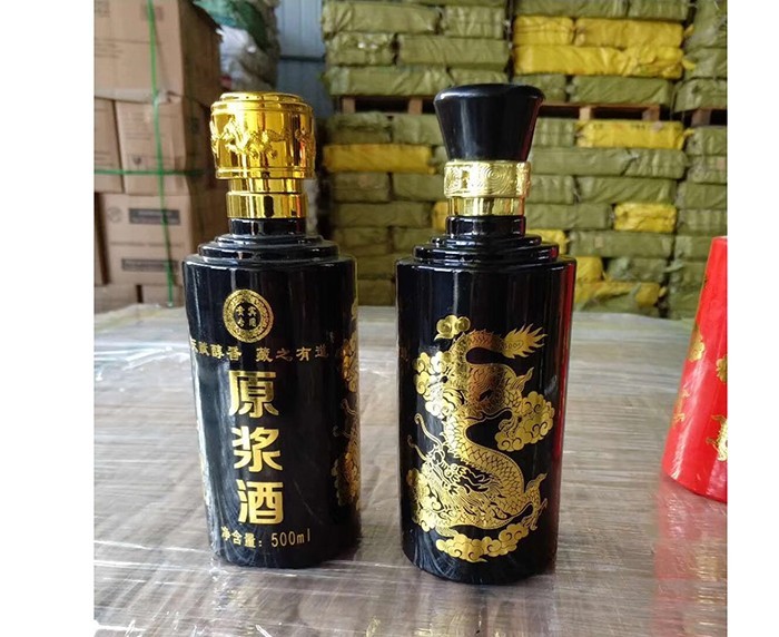 蒙砂酒瓶是在制品玻璃上,粘附一定大小面積的玻璃色釉粉,玻璃瓶廠經(jīng)過(guò)580~600℃的高溫烘烤,使玻璃色釉涂層凝結(jié)在玻璃外表,并顯現(xiàn)出具有與玻璃主體不同顏色的一種裝飾辦法。粘附玻璃色釉粉,可用排筆涂刷,亦可用膠輥滾涂。經(jīng)過(guò)絲印加工,能夠得到蒙砂面的樓空?qǐng)D案。 其辦法是:在玻璃制品外表上,絲印一層由阻熔劑構(gòu)成的圖案紋樣。
